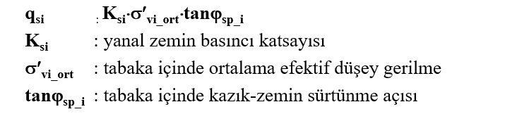 qsi: herhangi bir kohezyonsuz zemin tabakasında birim sürtünme direnci