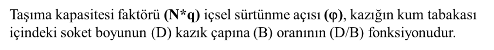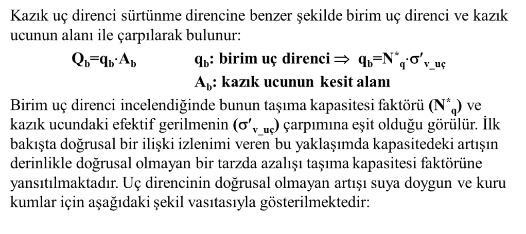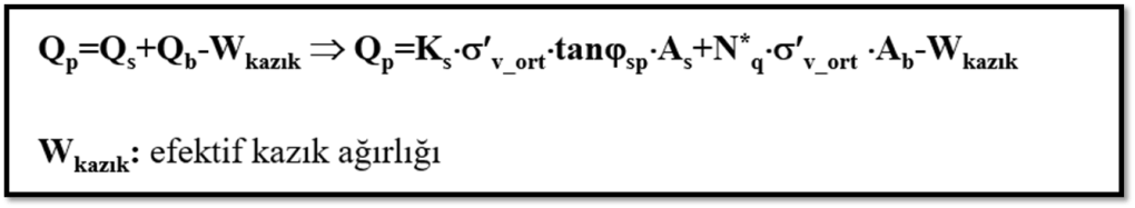 Kohezyonsuz zeminlerde kazık taşıma kapasitesi, Qp, aşağıda verildiği üzere hesaplanır: