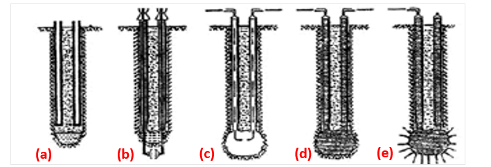 Taban enjeksiyonu için çeşitli teknikler mevcuttur. İster donatı kafesi içinde çelik borular bırakılmış olsun (sol üst), isterse donatı kafesine monte edilmiş basıncı dayanıklı polietilen veya benzeri borular (sağ üst) şeklinde olsun çimento enjeksiyonu kazık başından uca basınçlı bir şekilde ulaştırılır. Önce foraj tamamlanır ve donatı kafesi kuyu içine indirilir (a), kimi uygulamalarda kafes indirildikten sonra foraj bir miktar daha yapılsa da (b) bu nadirdir. Beton döküldükten 24 saat sonra pas payı basınçlı su ile çatlatılır (c). Bu sadece uç bölgesi ile sınırlı kalabileceği gibi uç bölgesi civarında 5B kadar yukarı çıkılabilir. Bilahare bütün kanallardan basınçlı çimento enjeksiyonu yapılır (d) ve daha sonra kanalların yarısı kapatılır ve diğer yarısından refü alınıncaya kadar enjeksiyon sürdürülür (e). Refü kriteri genellikle kazık başının zeminden dışarı doğru birkaç mm deplasman yapmasıdır. Taban enjeksiyonu ile uçta genişletme sağlanır ve kum zeminin foraj öncesi kayma mukavemeti parametrelerini kullanma imkanı edinilmiş olur.