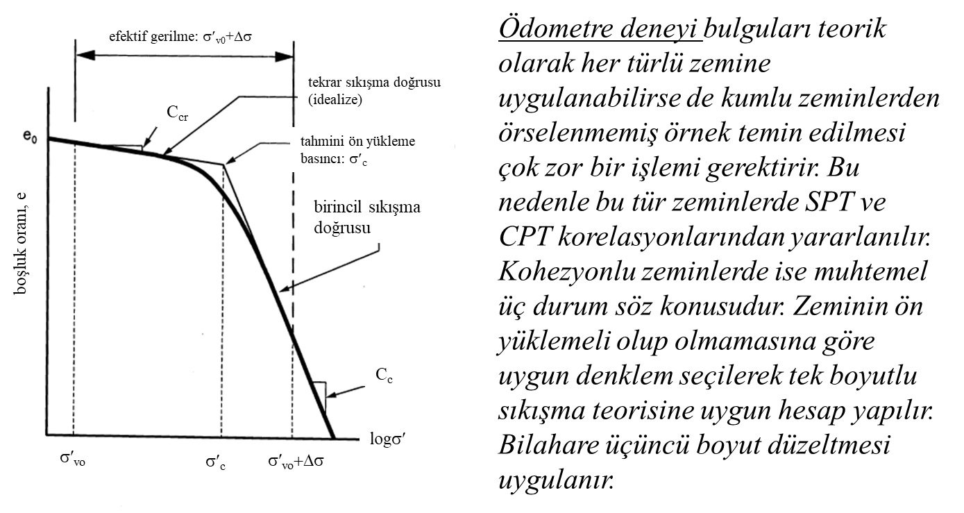 Suya doygun kohezyonlu zeminlerde sıkışma parametreleri konsolidasyon deneyinden, bu deneye ait bulgular yoksa korelatif ilişkilerden elde edilir.