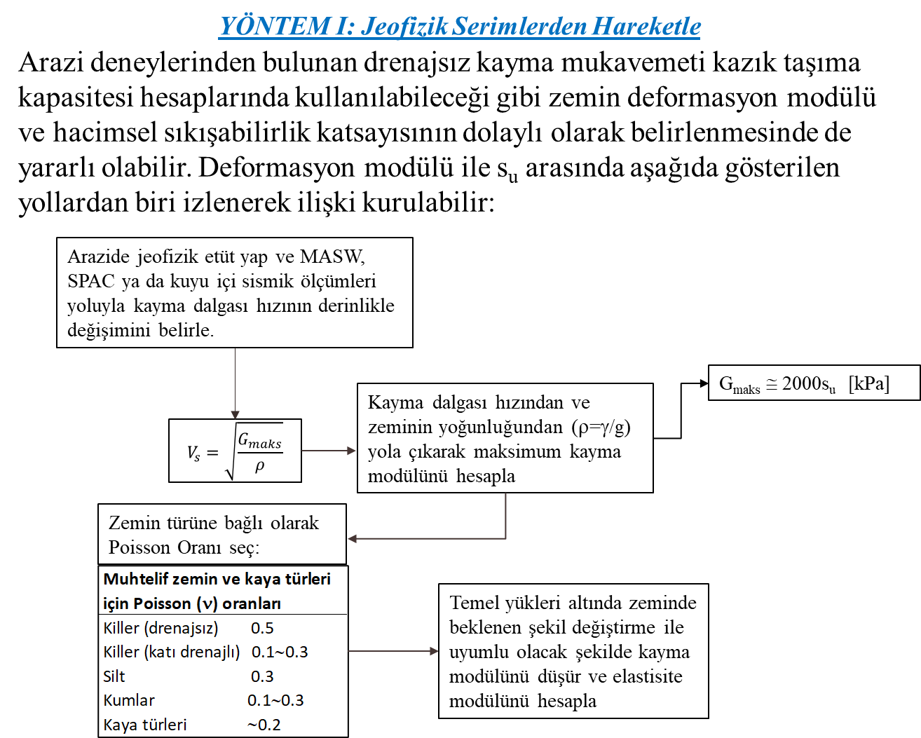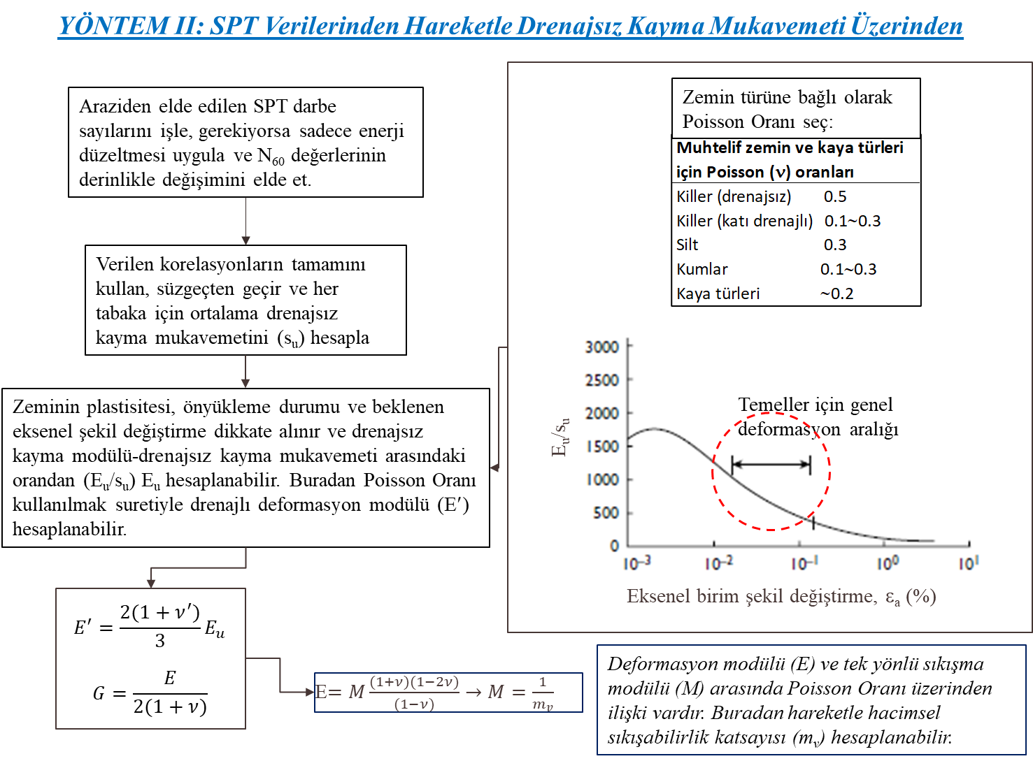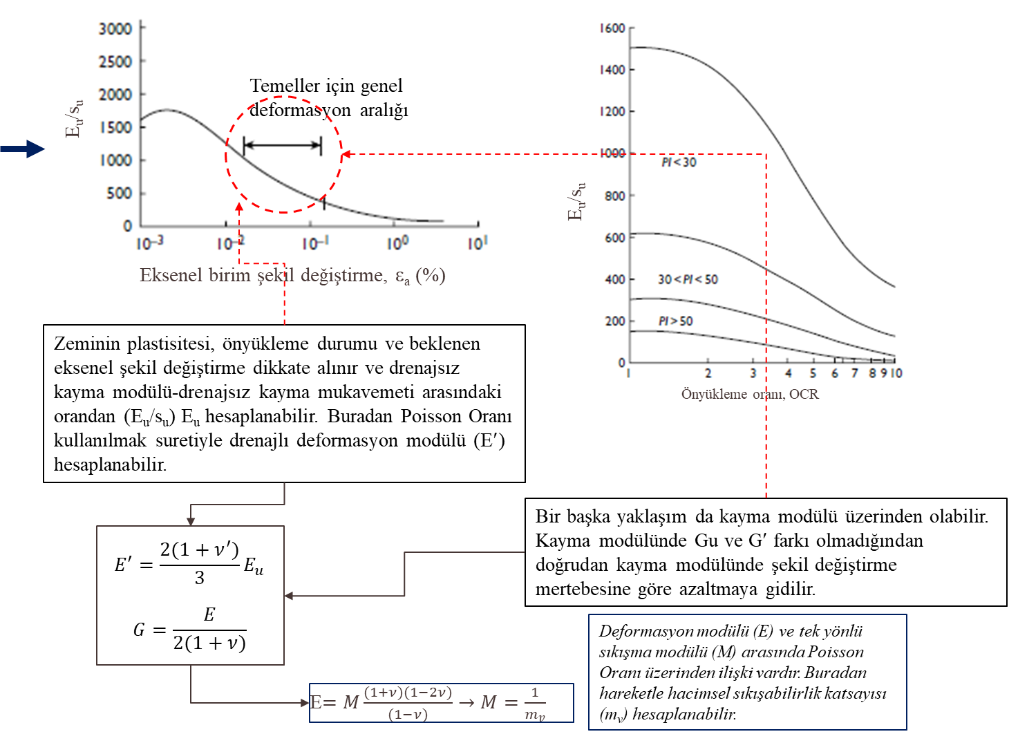 Korelasyonların güvenirliği saha tecrübeleri ve kaliteli örnekler üzerinde elde edilen verilerle kıyaslanmak üzere sınanmalıdır. Suya doygun killerde drenajsız kayma mukavemeti (su) ve deformasyon modülü (Eu veya E’) arasında geçiş olduğu için su için bir kısım korelasyonlar da bilgi amacıyla eklenmiştir.